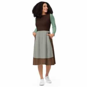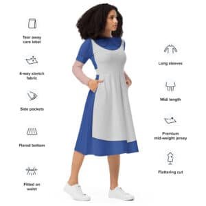 Alice in Wonderland Inspired Midi Dress: Enchanting Long Sleeve Design with Pockets
