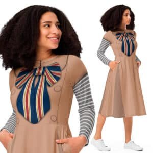 Alice in Wonderland Inspired Midi Dress: Enchanting Long Sleeve Design with Pockets